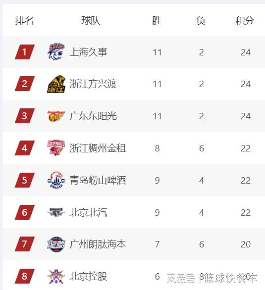 附:CBA积分榜最新排名